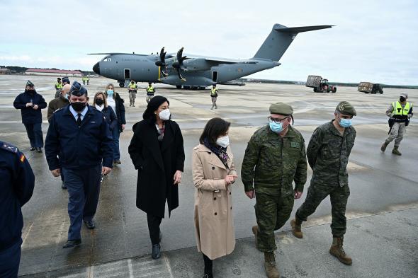 La ministra de Defensa, Margarita Robles, ha acudido a mediodía a la base aérea a conocer los detalles de este envío urgente y supervisar las tareas de carga del primer avión, que al igual que el que saldrá esta tarde tiene previsto aterrizar en un aeropuerto de Polonia situado a unos 90 kilómetros de la frontera con Ucrania.