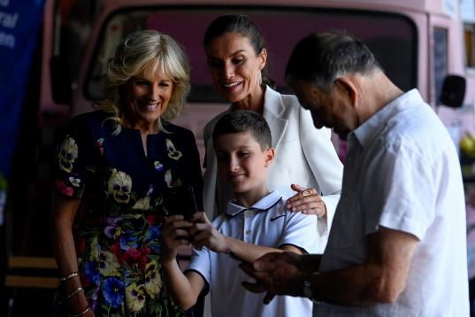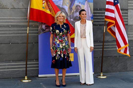 Jill Biden y la reina Letizia visitan un centro de refugiados ucranianos en Pozuelo de Alarcón.