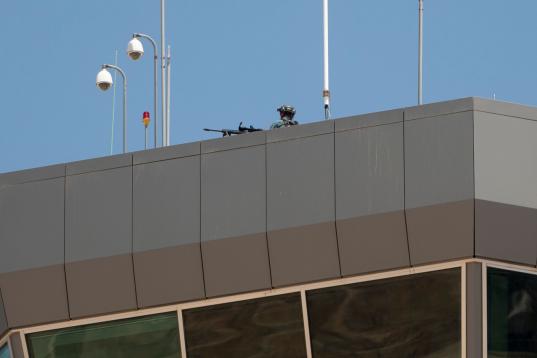 Un guardia civil supervisa la llegada de Biden a Madrid.