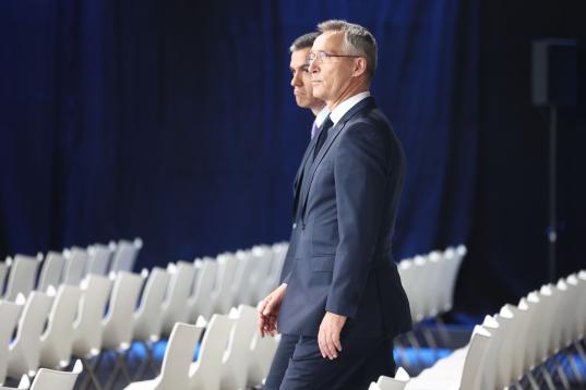 El secretario general de la OTAN, Jens Stoltenberg, y el presidente Sánchez.
