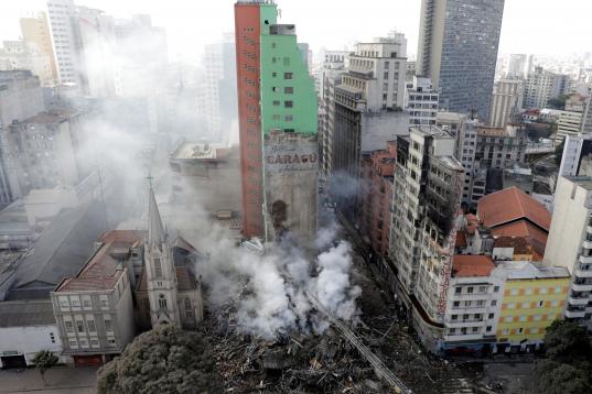 Espectacular derrumbe de un edificio de 24 pisos en Sao Paulo tras un incendio