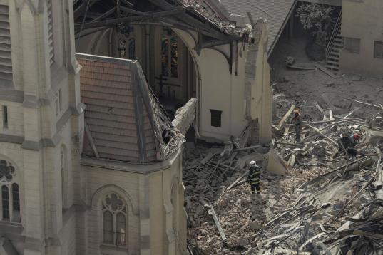 El desplome de uno de los edificios también provocó daños en una iglesia próxima, que tuvo una parte de su estructura damnificada.