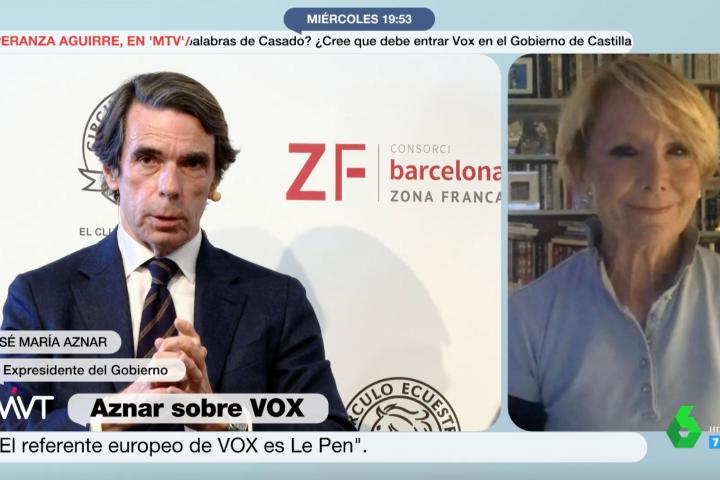 Esperanza Aguirre, fiel a su curioso estilo, responde así a las palabras de Aznar sobre Vox