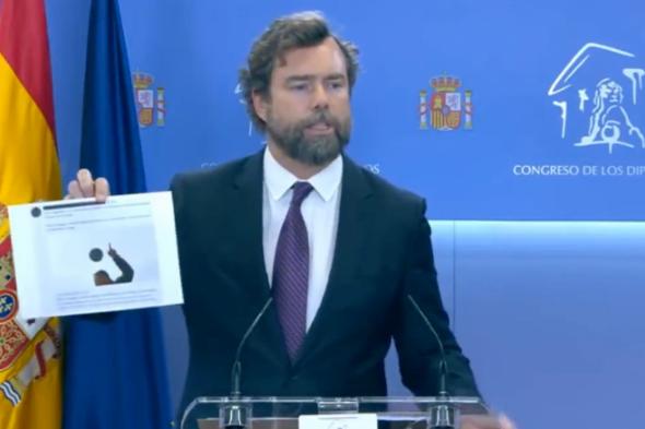 Iván Espinosa de los Monteros, portavoz de la formación de ultraderecha Vox en el Congreso de los Diputados, compareció este miércoles en rueda de prensa desde la Cámara baja para, entre otras cosas, amenazar con denunciar a quienes vinculen a su partido con el aumento de ataques homófobos de las últimas semanas.