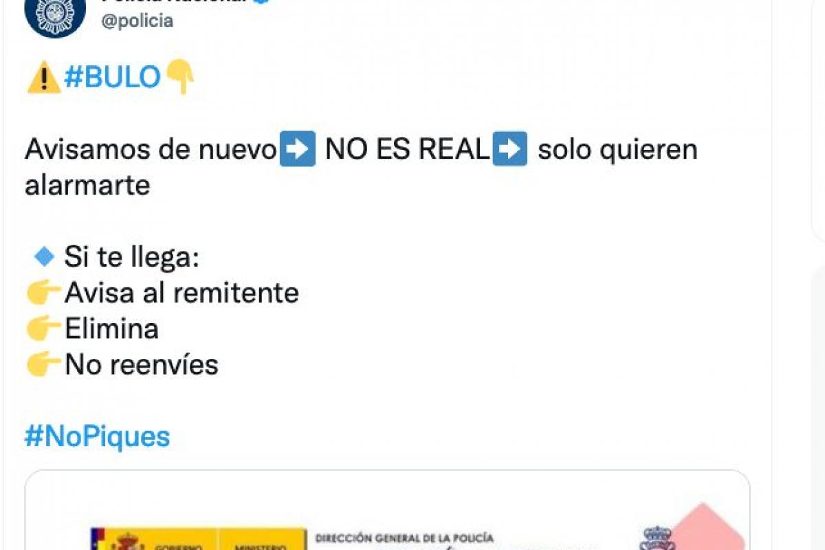 La Policía Nacional ha avisado a la población a través de su perfil de Twitter de un bulo viejo, pero que está volviendo a circular por redes como WhatsApp y que está alarmando a la ciudadania.