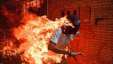 El fotógrafo ha detallado su trabajo: “El lugar era un apagón total. Entonces, inesperadamente, la gente comenzó a aplaudir en la oscuridad. La gente sostenía teléfonos móviles para iluminar a un joven en el centro. Recitó un famoso poema de protesta, uno improvisado. Entre sus respiraciones, todos gritaron “thawra”, la palabra ‘revolución’ en árabe. Su expresión facial y su voz me impresionaron, no podía dejar de concentrarme en él y capturé el momento”.