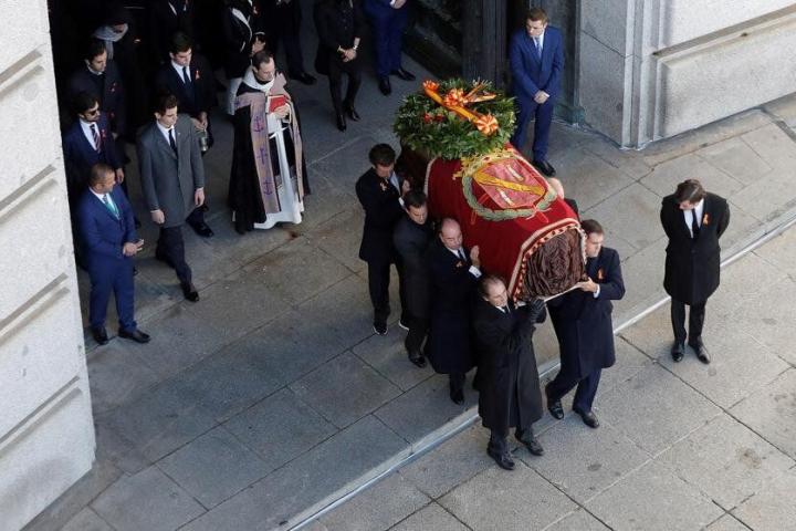 El féretro iba cubierto por un pendón con el considerado escudo personal del dictador