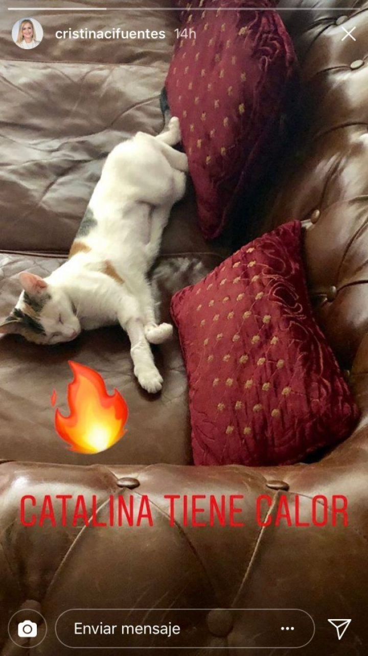 No se ha podido ver a Cifuentes, que no ha hecho apariciones públicas tras su dimisión. Pero sí nos narra parte de su vida a través de Instagram stories, la sección de fotos y vídeos que solo duran 24 horas en la popular red social. Allí colgaba ayer por la noche una imagen de una de sus gatas -a las que retrata constantemente-.