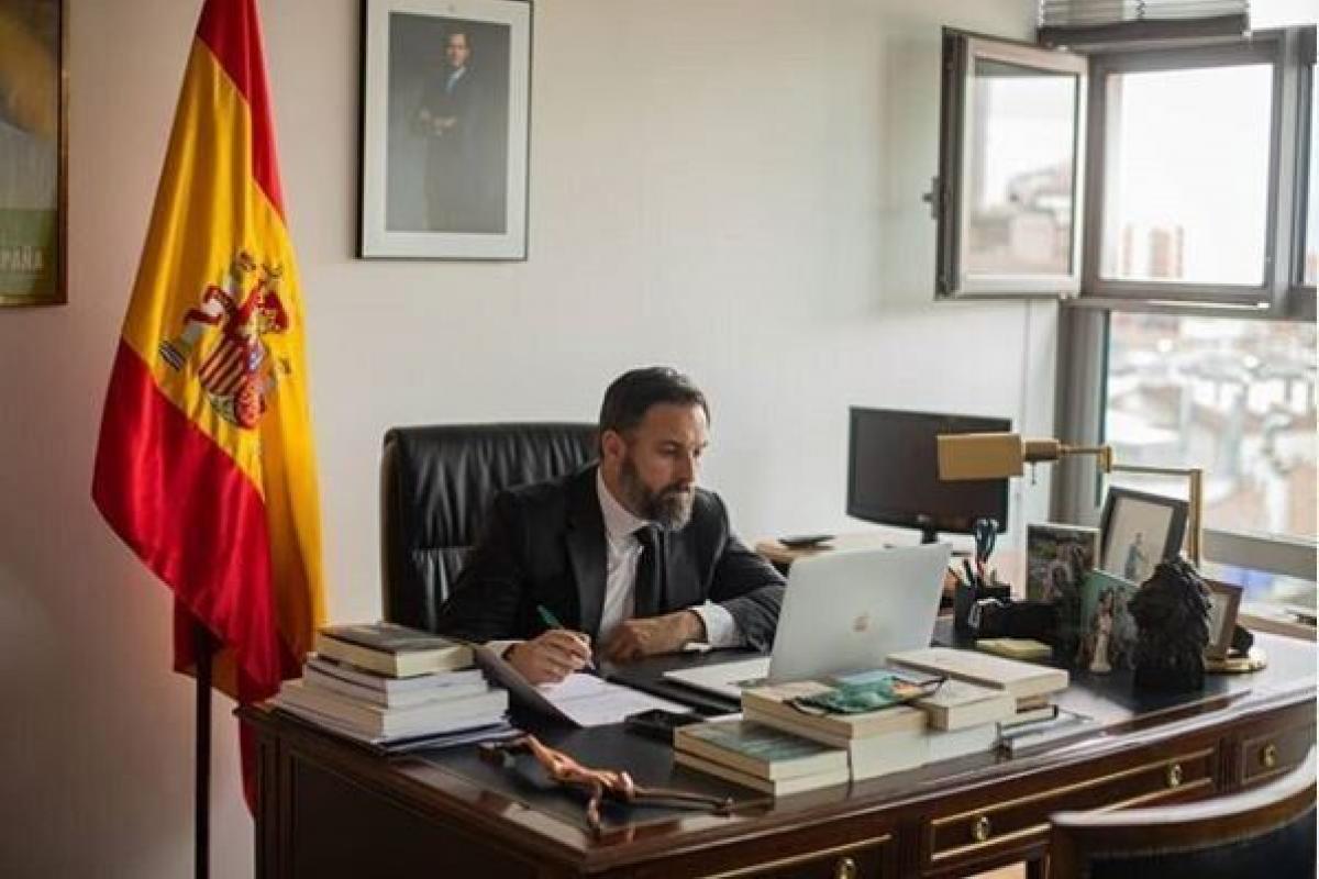 En la imagen, el dirigente ultraderechista aparece trabajando en su despacho del Congreso. La instantánea ha provocado muchos comentarios porque la mesa aparece llena de objetos y también hay un ordenador.