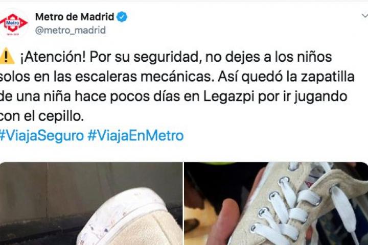 Ahora, Metro de Madrid ha publicado una impactante imagen en la que se ve cómo quedó la zapatilla de una niña que sufrió un accidente mientras jugaba con el cepillo.
