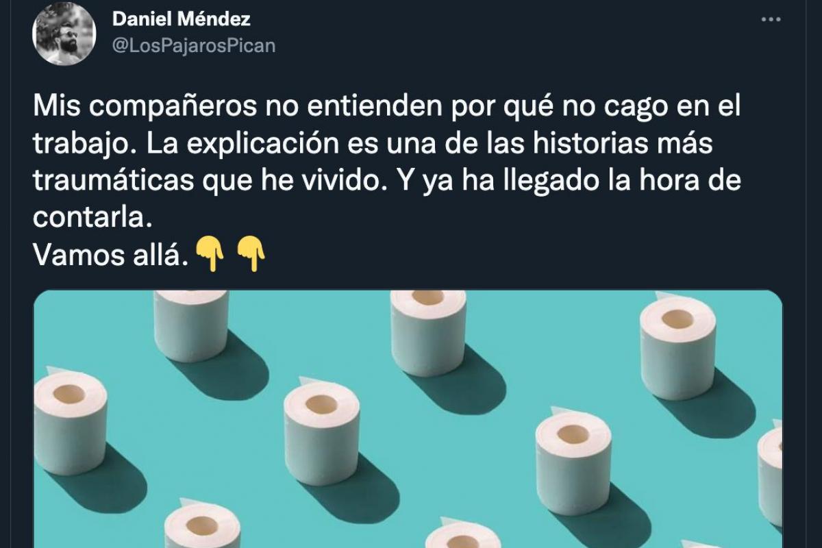 De esto ha querido hablar Daniel Méndez (@LosPajarosPican) en Twitter, director creativo publicitario y columnista en eldiario.es, sobre por qué no defeca en el trabajo. El hilo puede ser inventado o real, pero eso no es lo importante. El caso es que se trata de una historia con un final que ni te imaginas.