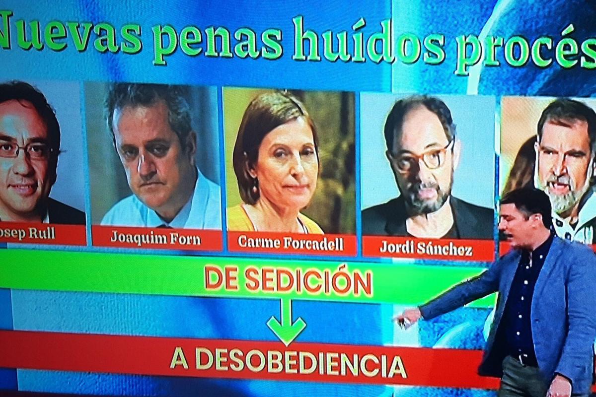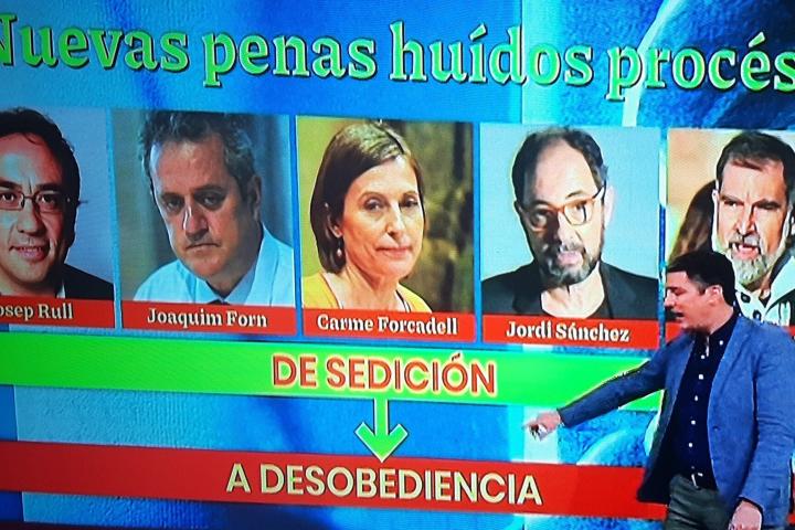 ¿Y qué ocurre con los condenados por el procés como Josep Rull, Joaquim Forn, Carme Forcadell, Jordi Sánchez y Jordi Cuixart? Esto es lo que se han preguntado este viernes en el programa de Antena 3 “Espejo Público” a raíz de la decisión de Llarena. La explicación ha sido clara: su delito de sedición pasará a desobediencia, por lo que muy pronto agotarían su proceso de inhabilitación.