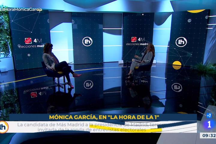 La hora de la 1 ha continuado con su serie de entrevistas previas a las elecciones de la Comunidad de Madrid del próximo 4 de mayo. Este martes, le ha tocado el turno a la candidata de Más Madrid, Mónica García.