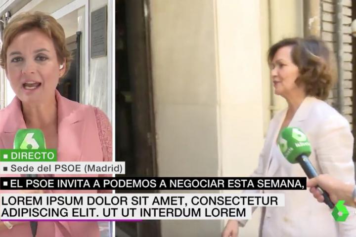 En el informativo de las 14:00, el presentado por Helena Resano, se ha podido ver un rótulo muy llamativo que no pegaba para nada con la noticia en cuestión: las negociaciones entre Podemos y PSOE de cara a un futuro Gobierno de coalición.