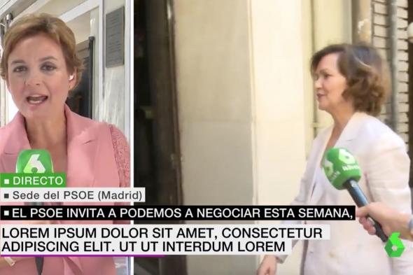 En el informativo de las 14:00, el presentado por Helena Resano, se ha podido ver un rótulo muy llamativo que no pegaba para nada con la noticia en cuestión: las negociaciones entre Podemos y PSOE de cara a un futuro Gobierno de coalición.