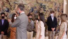 Sí que es verdad que con el pelo recogido no se aprecian bien los mechones blancos de la reina, tal y como se puede ver en esta imagen captada hace unas semanas durante el acto de apertura del año Jacobeo 2021-2022 en Roncesvalles.
