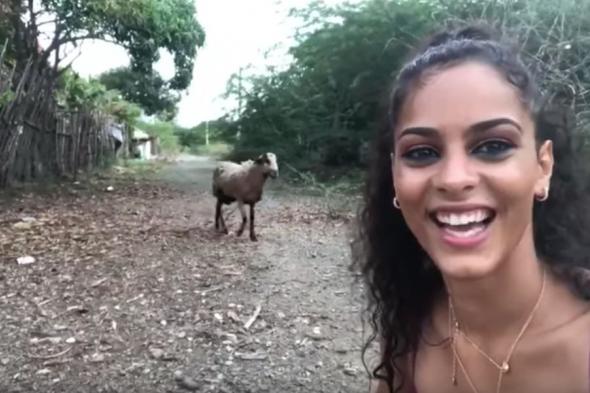 La cabra, atada con una cuerda, se fue acercando poco a poco. En una primera intentona de darle a la joven falló, pero a la segunda cogió carrerilla y la golpeó de manera fuerte.