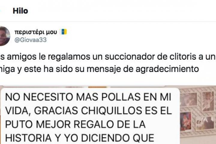 Mis amigos le regalamos un succionador de clitoris a una amiga y este ha sido su mensaje de agradecimiento pic.twitter.com/u2wtds8iZj