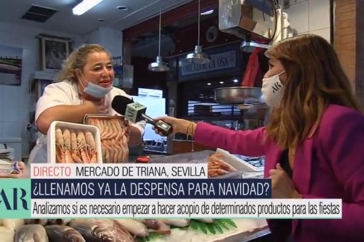 Por ello, y aprovechando que una reportera de El Programa de AR se ha desplazado al mercado para empezar a informar de cómo van a estar los productos en las fiestas de Navidad y si va a ser necesario hacer acopio, la pescadera le ha mandado un mensaje de ánimo.