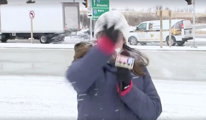 La periodista de la cadena FOX Amy DuPont se encontraba en Milwaukee para informar en directo de la situación de las carreteras tras las nevadas que ha sufrido este estado del norte de Estados Unidos.
