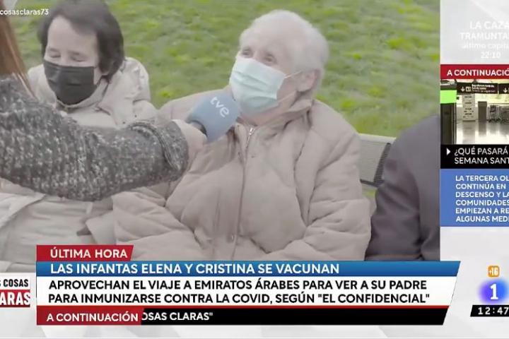Una reportera de Las Cosas Claras, el programa de Jesús Cintora en TVE, se ha acercado a la anciana para preguntarle por la vacunación y por su estado después de más de un año sufriendo la pandemia.