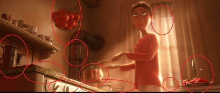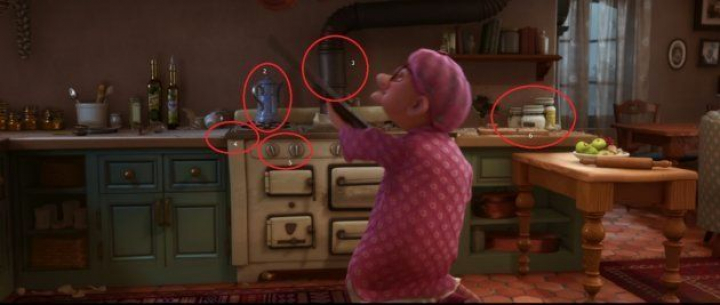 La respuesta está en relacionar dos escenas de la película, en concreto dos flashbacks. En el primero se muestra cómo y dónde aprendió a cocinar Remy y en la segunda se viaja a la infancia de Ego, a la cocina donde su madre preparaba los platos con los que creció. Como apunta el avispado usuario, sólo hay que fijarse un poco para darse cuenta que una y otra estancia comparten los mismos elementos: la misma cafetera, el mismo tipo de fogones, la misma cesta metálica para guardar fruta... Fíjate en los elementos que ha señalado con un círculo rojo.