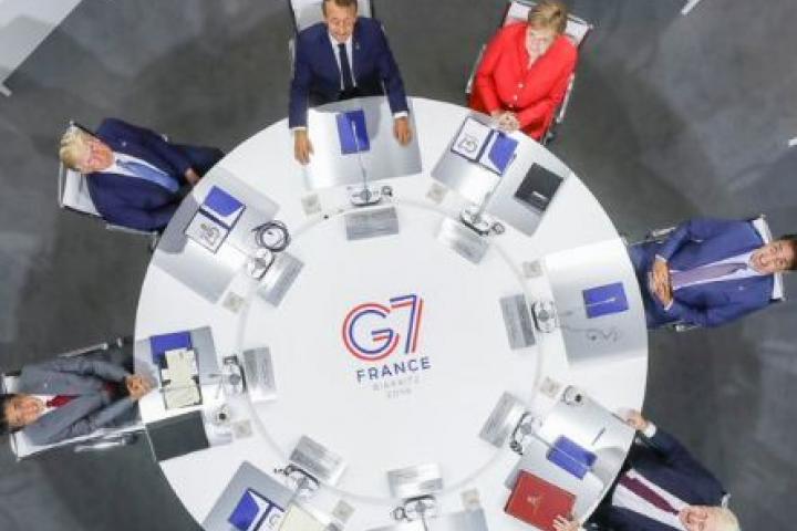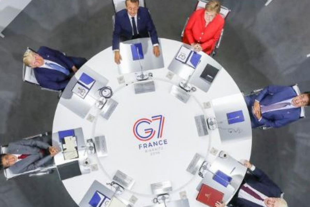 Líderes mundiales durante una reunión en la cumbre del G7.