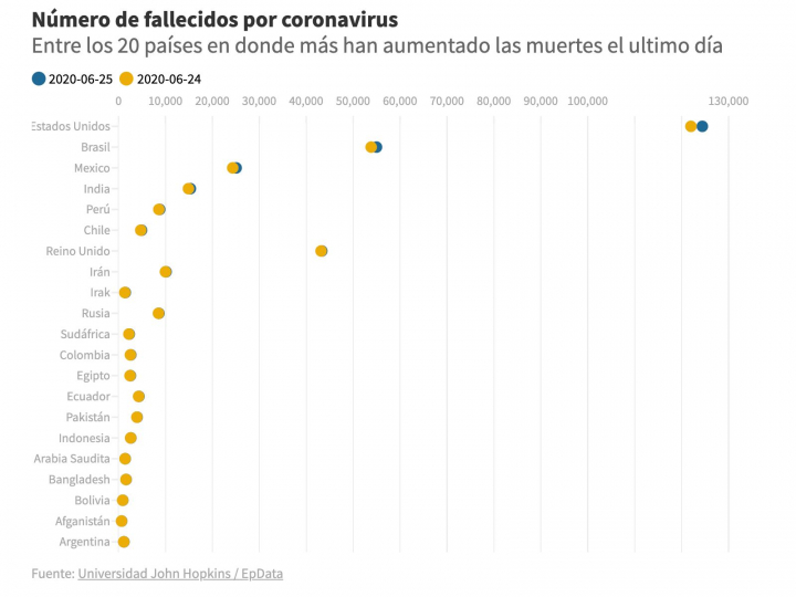 Por su parte, el Instituto de Métricas y Evaluaciones de Salud (IHME) de la Universidad de Washington, en cuyos modelos de predicción de la evolución de la pandemia se fija a menudo la Casa Blanca, calcula que Estados Unidos llegará al mes de octubre con unos 180.000 muertos.