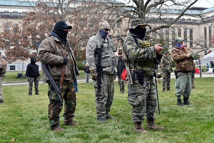 A lo largo del fin de semana aparecieron más indicios de que la violencia no ha terminado. El sábado, decenas de manifestantes armados se congregaron frente al capitolio de Kentucky para protestar por todo, desde las restricciones por el coronavirus hasta la negativa de Mitch McConnell, líder de la mayoría republicana del Senado, a apoyar los esfuerzos vanos pero peligrosos de Trump de torcer el resultado electoral.