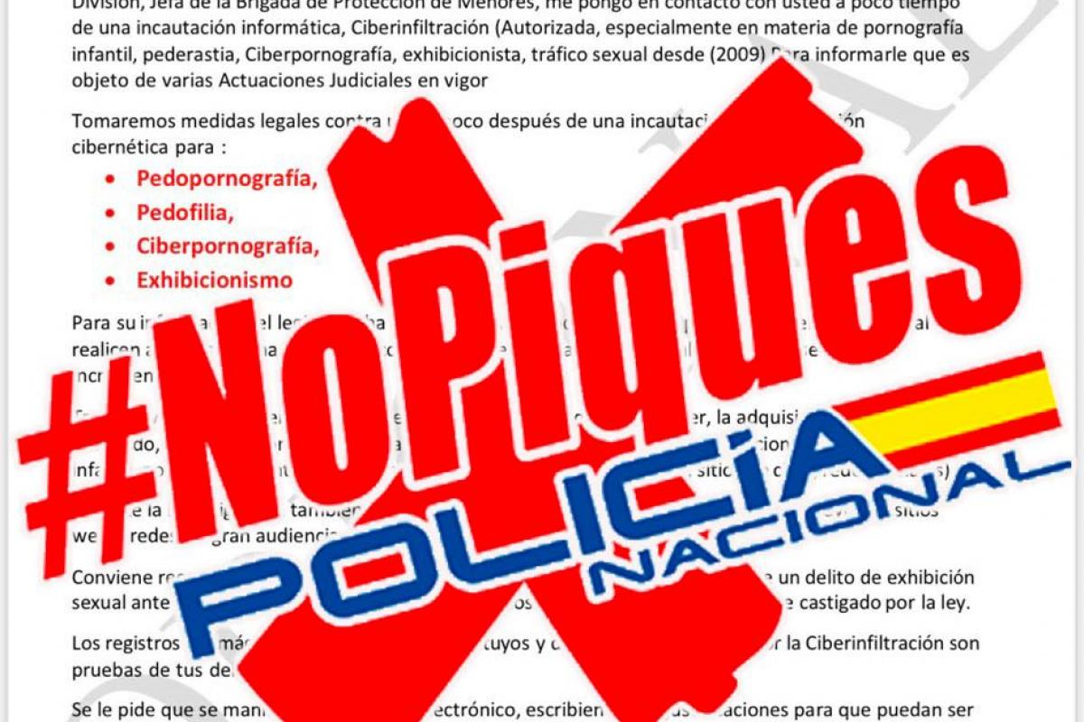 Un nuevo intento de estafa vuelve a circular por internet. La Policía Nacional ha alertado a través de su cuenta de Twitter de un falso correo electrónico, otra vez en nombre de la Guardia Civil, en el que se notifica al destinatario que es objeto de una investigación por delitos de pornografía infantil.