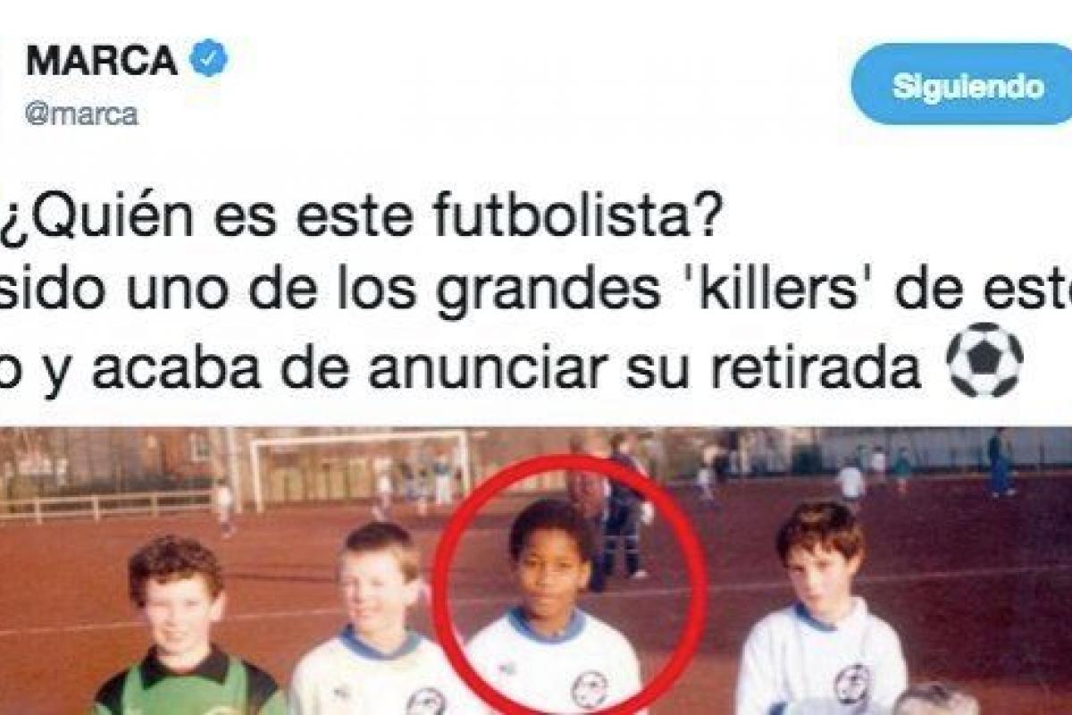 El diario Marca ha querido jugar con sus seguidores en Twitter planteando la siguiente adivinanza con esta foto de hace unos años del propio Drogba: "¿Quién es este futbolista? Ha sido uno de los grandes 'killers' de este siglo y acaba de anunciar su retirada".