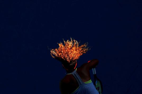 Naomi Osaka juega con Simona Halep en el Open de tenis en Melbourne, Australia.