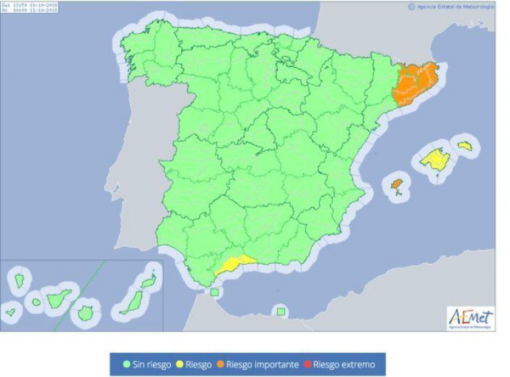 Así, el aviso por lluvias se ha activado en las provincias de Barcelona y Gerona que se encuentran en situación de riesgo importante y Tarragona y las Islas Baleares, donde desde las 19 horas del martes se han registrado 220 litros por metro cuadrado que se han cobrado cinco víctimas mortales.
