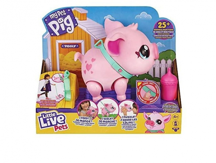 My Pet Pig es un cerdito interactivo de color rosa que pertenece a la colección Little live pets!. A esta mascota de tacto agradable se la puede sacar a pasear con la correa, bailar al ritmo de cualquier música, darle de comer con un biberón y acariciarle mientras él continúa caminando.