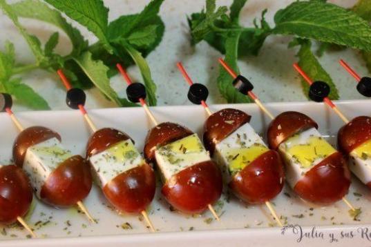 Ingredientes: tomatitos cherry, queso fresco o requesón, orégano, aceite de oliva virgen y sal.