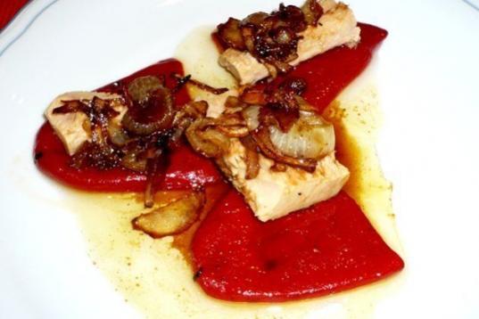 Ingredientes: pimientos del piquillo, una cebolla y unos tacos de bonito.