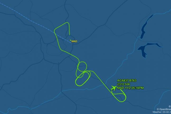 El avión del vuelo AC837 de Air Canada con 130 personas a bordo con una avería en una rueda, ha aterrizado en el Aeropuerto Adolfo Suárez Madrid-Barajas tras más de cuatro horas volando en círculos.