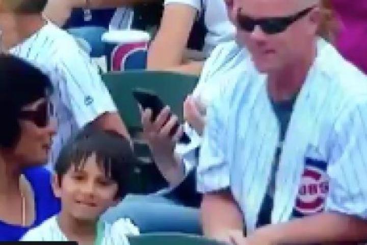En el partido de béisbol entre los Cubs de Chicago y los Cardinals de San Luis, un jugador le acercó al niño una pelota que había caído cerca de su asiento. Es entonces cuando el adulto de detrás se levanta y le quita la pelota.