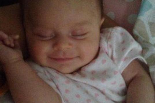 El bebé Reagan Caldwell, de 9 meses, se puso por primera vez gafas cuando su padre Brandon estaba de viaje de trabajo. Pasó dos meses en la Antártida.