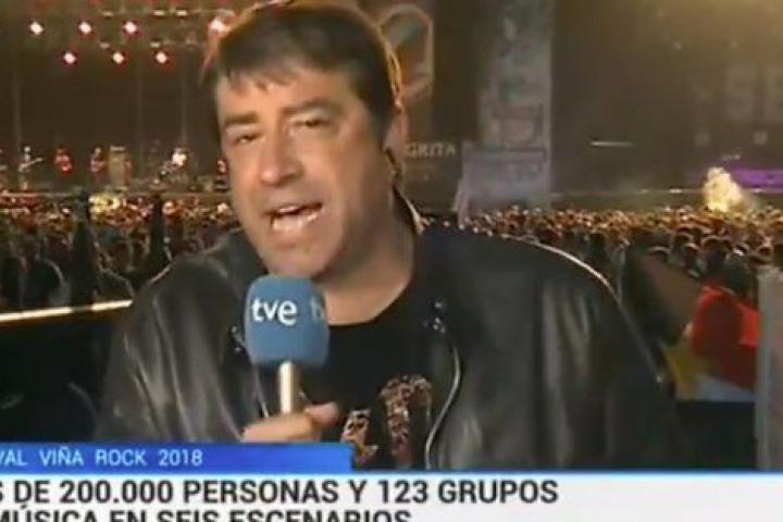 Cuando uno hace su trabajo con pasión, hace cosas como la que ha hecho el periodista de TVE Juan Ballesteros, enviado del Telediario al festival Viña Rock que se celebra en la localidad albaceteña de Villarrobledo.