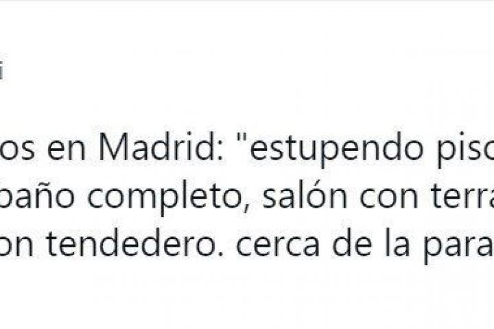 “110 metros cuadrados, cuatro dormitorios, baño completo, salón con terraza y cocina amueblada con tendedero. cerca de la parada de bus y metro”. Si buscas piso y tu bolsillo te lo permite, este anuncio podría ser más que interesante.