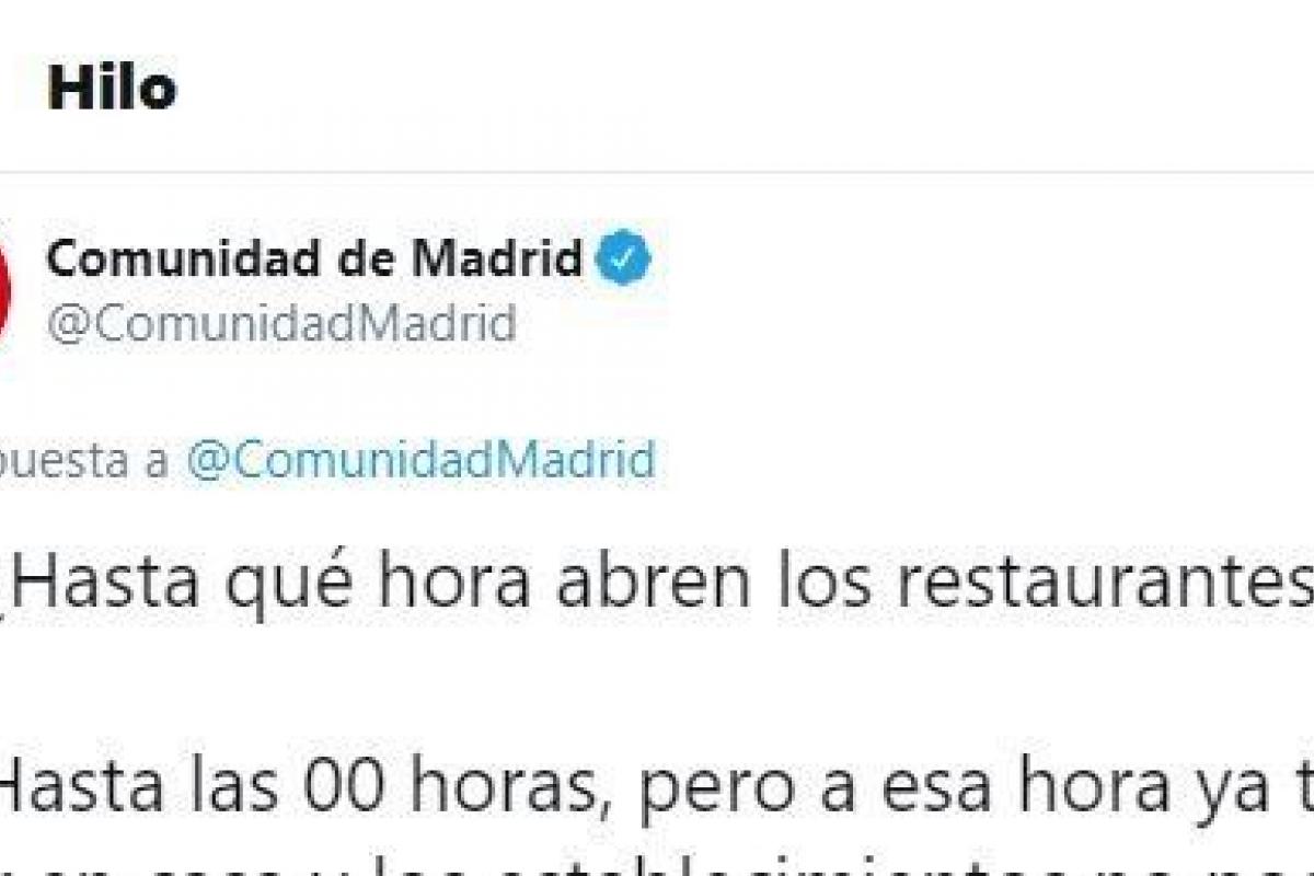 Para explicar un poco mejor todas las normas, la Comunidad de Madrid ha publicado un hilo de tuits. Uno de ellos ha dado mucho juego en Twitter porque describe unas normas a las que muchos usuarios no han encontrado ningún sentido.
