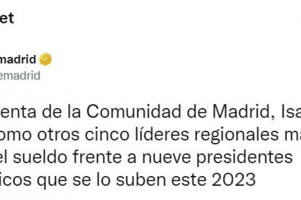Pocos días llevamos de 2023 y Telemadrid ya ha compartido un tuit que ha generado muchos comentarios en redes sociales sobre el salario de la presidenta de la Comunidad de Madrid, Isabel Díaz Ayuso.