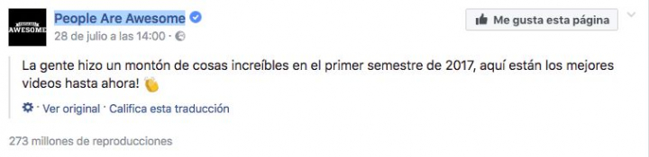 Un vídeo de menos de cinco minutos de duración —compartido por People Are Awesome—, que demuestra que el ser humano es capaz de hacer cosas increíbles, tiene ya la friolera de 273 millones de reproducciones en Facebook en apenas tres días.