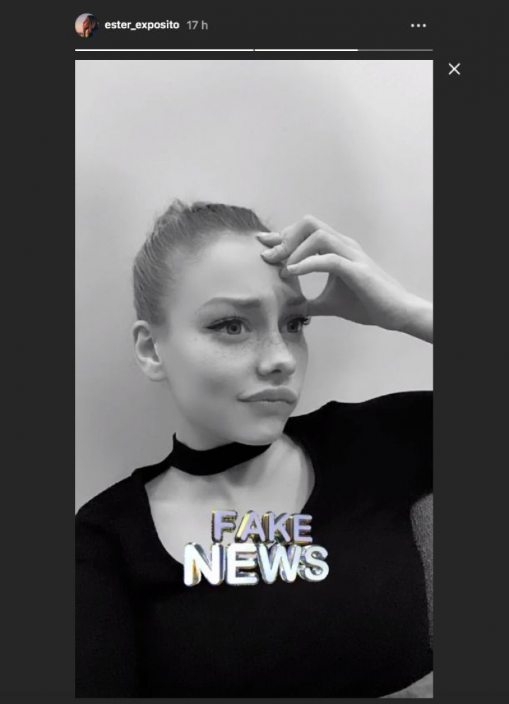 Expósito, de 19 años, ha colgado una fotografía de ella con un un filtro en la que aparece con el ceño fruncido y cara de contrariedad junto a un letrero en el que se lee “Fake News” (noticias falsas).