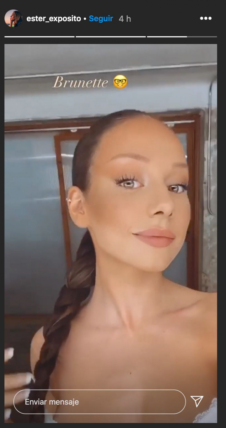 Este viernes la actriz ha vuelto a ser noticia por su radical cambio de look. Expósito ha dicho adiós a su característica melena rubia y ha aparecido en su último story de Instagram con el pelo moreno y una trenza. “Brunette 🤓”, ha escrito sobre las imágenes en las que aparece con los sones del tema La Nota de Manuel Turizo.