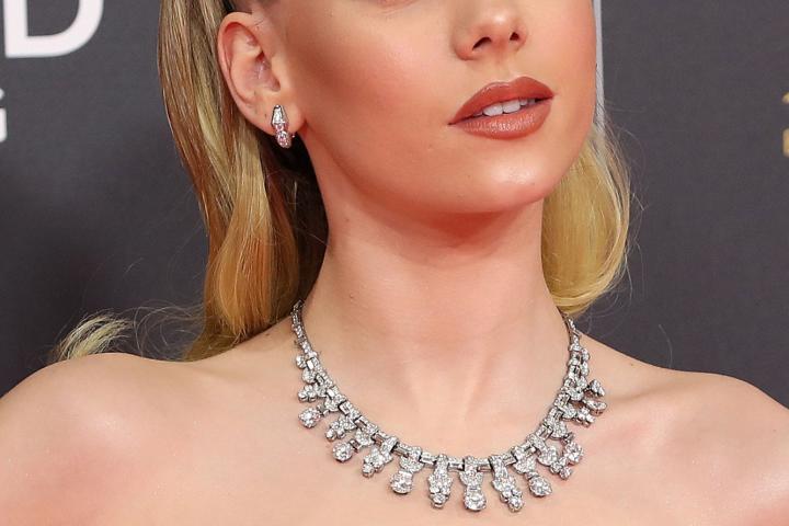 La actriz ha rematado el estilismo con llamativas joyas: unos grandes pendientes, un collar y una pulsera de plata.