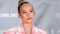 La protagonista de Élite deslumbró con un vestido morado de Etro de inspiración setentera. El diseño, con un tirante al cuello y un bralette, se unía por la espalda a una falda de cintura baja que dejaba su vientre al aire. Una larga cola y una abertura en un lateral remataban la prenda.