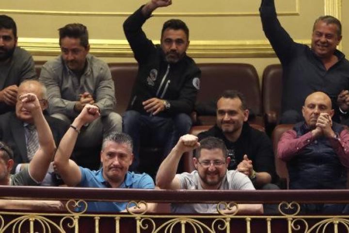 Varios representantes de los estibadores, en huelga hasta ese mismo día en protesta por la propuesta del Gobierno, ya celebraron en la Cámara baja el éxito de sus reivindicaciones, pero ahora han ido un paso más.