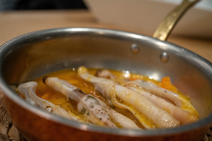 La carta tiende al homenaje, no es un restaurante para ir con el freno de mano echado, ya que entonces es realmente complicado disfrutar de la profundidad de su oferta, que consiste en varias de las materias primas estrellas de un alto coste.